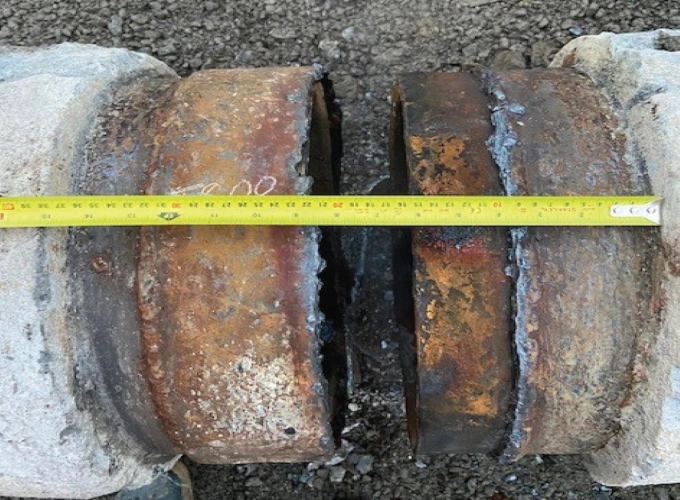 Construction of the LRT commenced early 2020. As utilities are not always located where they are shown on the drawings provided to the contractor, an existing watermain AWWA C303 400mm diameter, 45 degree elbow as well as a straight pipe were both damaged while working on the Orleans Park and Ride portion of the contract.